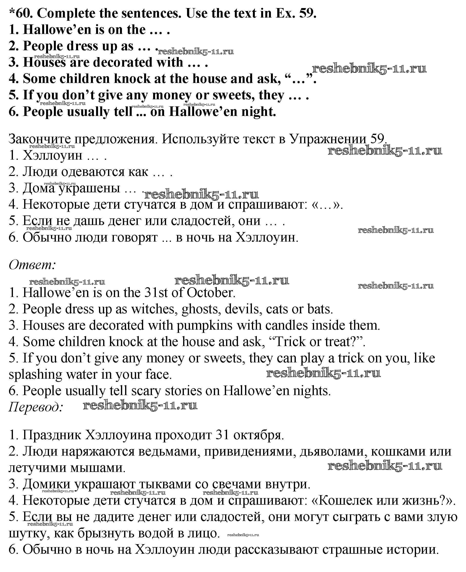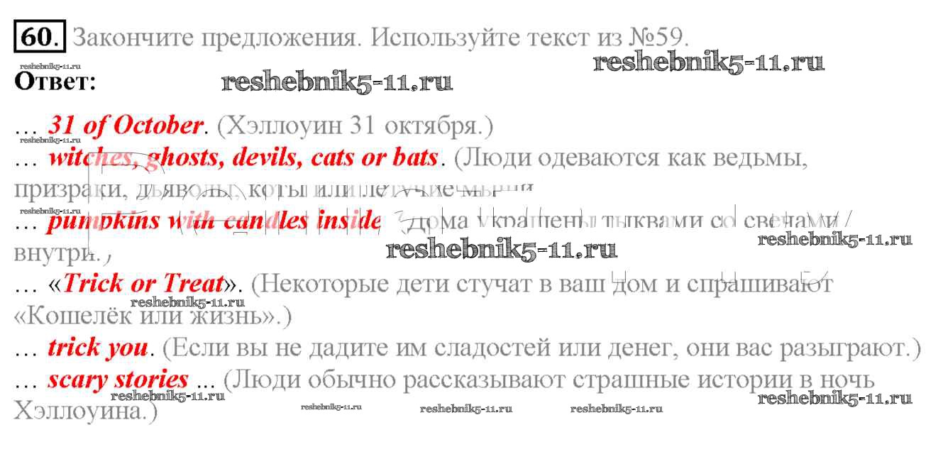 Готовая домашняя работа с ответами по Английскому языку за 7 класс Биболетова, Трубанева Учебник УМК Титул 2015 ФГОС - Exercises 60