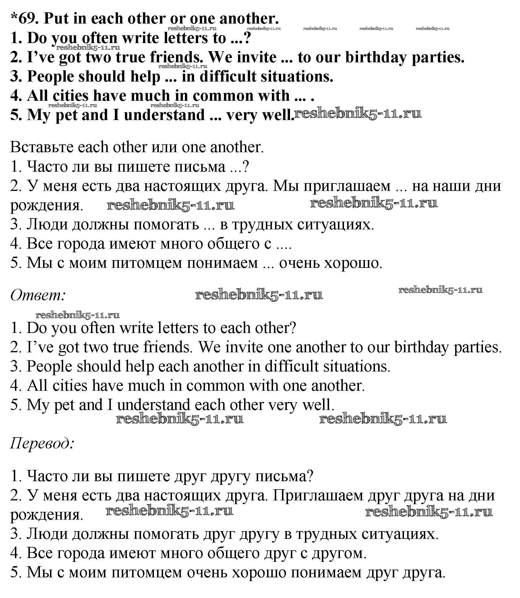 Готовая домашняя работа с ответами по Английскому языку за 7 класс Биболетова, Трубанева Учебник УМК Титул 2015 ФГОС - Exercises 69