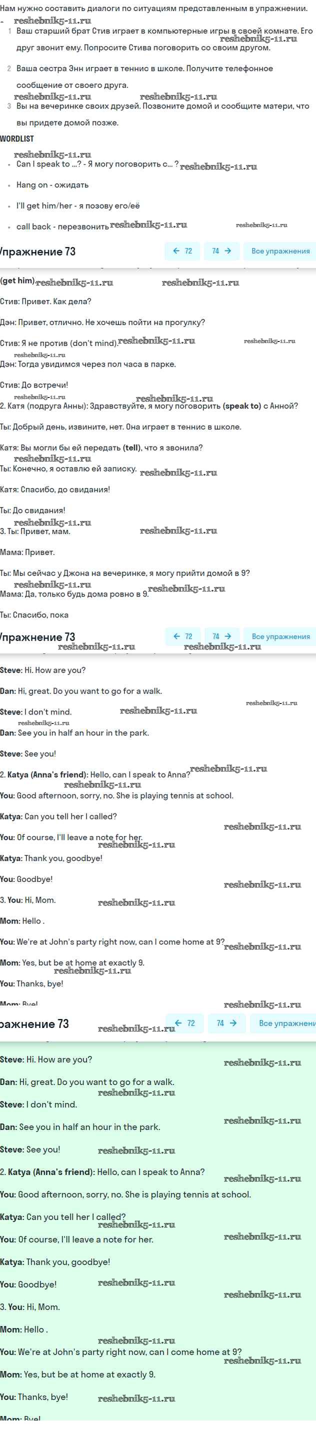 Готовая домашняя работа с ответами по Английскому языку за 7 класс Биболетова, Трубанева Учебник УМК Титул 2015 ФГОС - Exercises 73