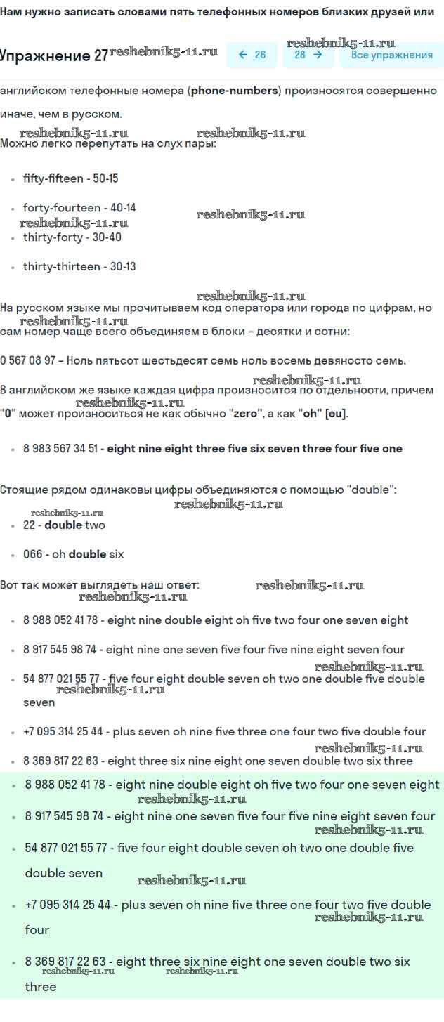 Готовая домашняя работа с ответами по Английскому языку за 7 класс Биболетова, Трубанева Учебник УМК Титул 2015 ФГОС - Homework 27