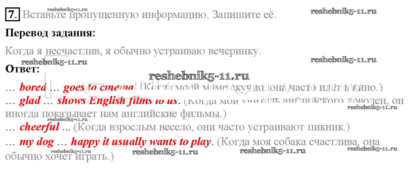 Готовая домашняя работа с ответами по Английскому языку за 7 класс Биболетова, Трубанева Учебник УМК Титул 2015 ФГОС - Homework 7