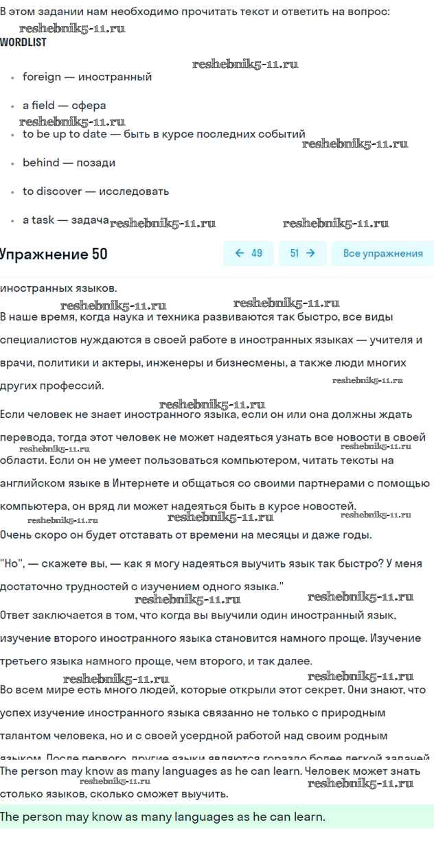 Готовая домашняя работа с ответами по Английскому языку за 7 класс Биболетова, Трубанева Учебник УМК Титул 2015 ФГОС - Exercises 50