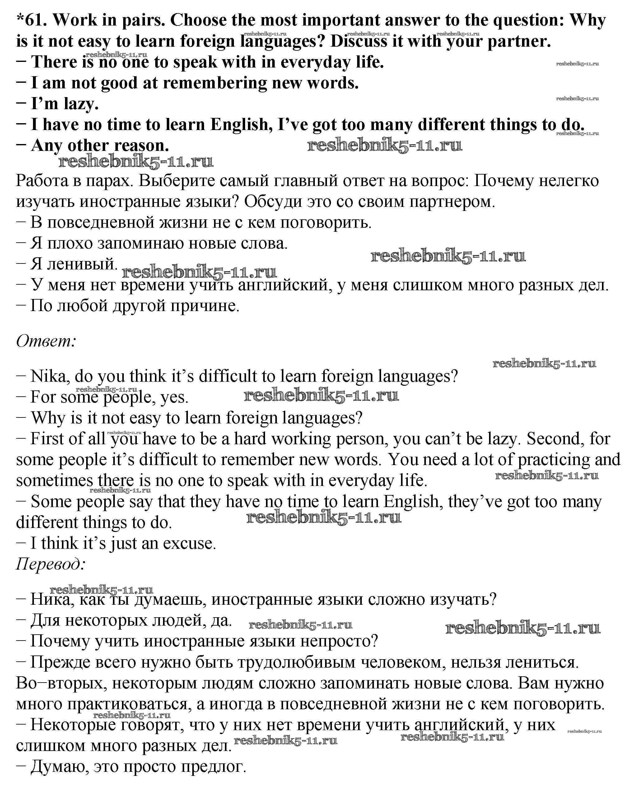 Готовая домашняя работа с ответами по Английскому языку за 7 класс Биболетова, Трубанева Учебник УМК Титул 2015 ФГОС - Exercises 61