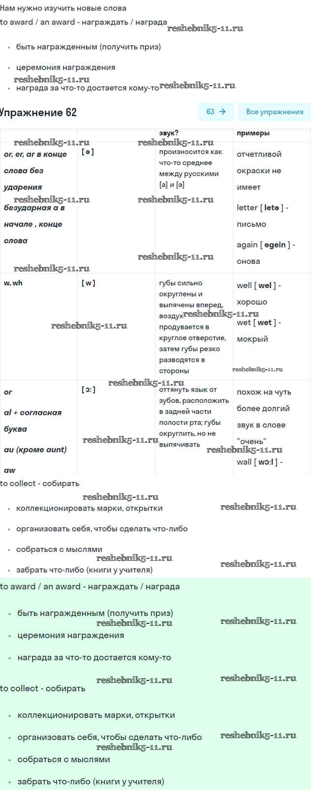Решебник №1 (2017) / учебник 2017 (Дрофа) / unit 2 / exercise / 62