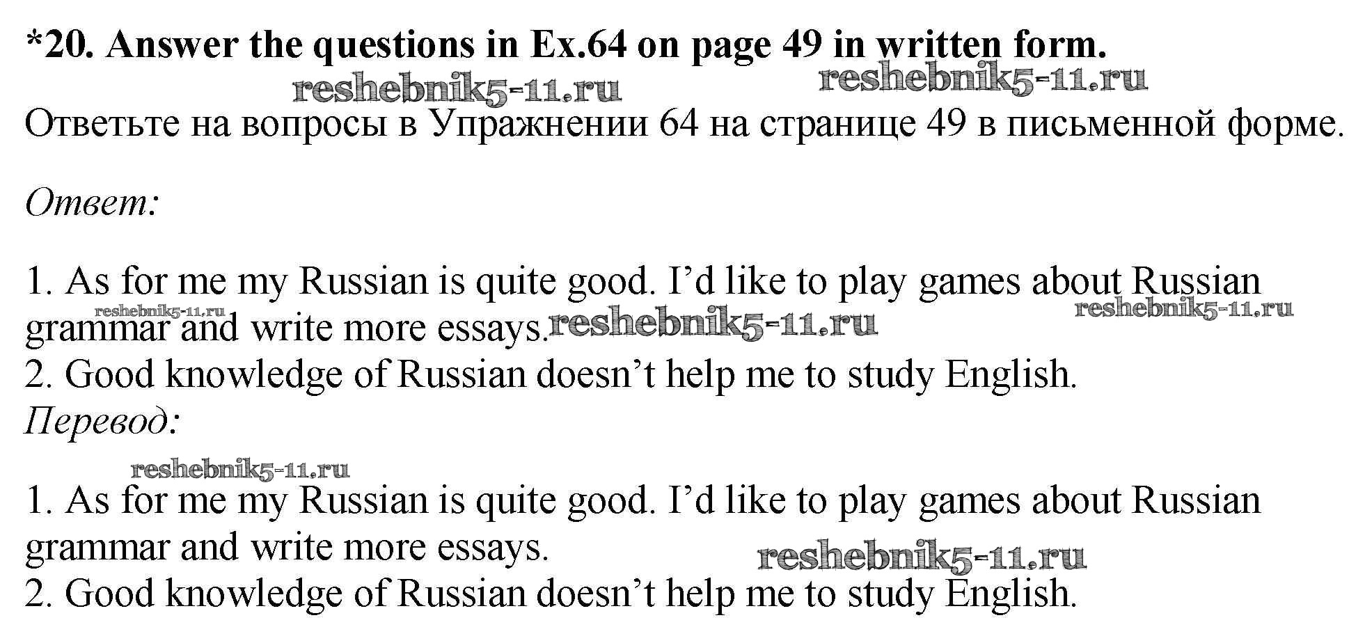 Готовая домашняя работа с ответами по Английскому языку за 7 класс Биболетова, Трубанева Учебник УМК Титул 2015 ФГОС - Homework 20