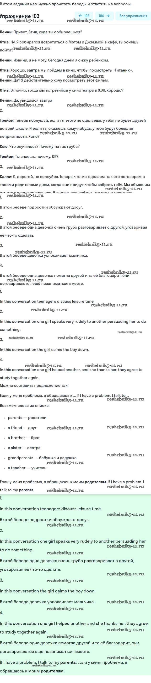 Готовая домашняя работа с ответами по Английскому языку за 7 класс Биболетова, Трубанева Учебник УМК Титул 2015 ФГОС - Exercises 103