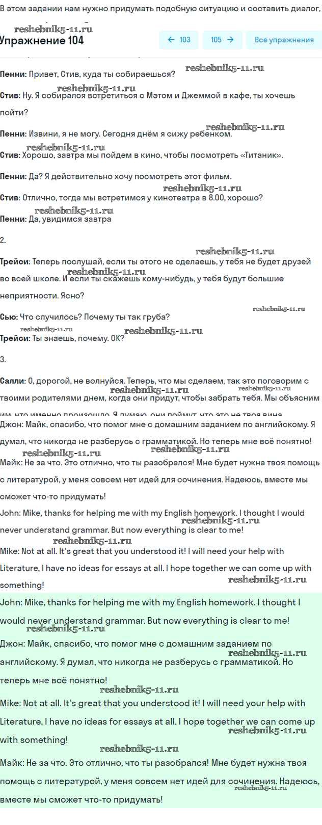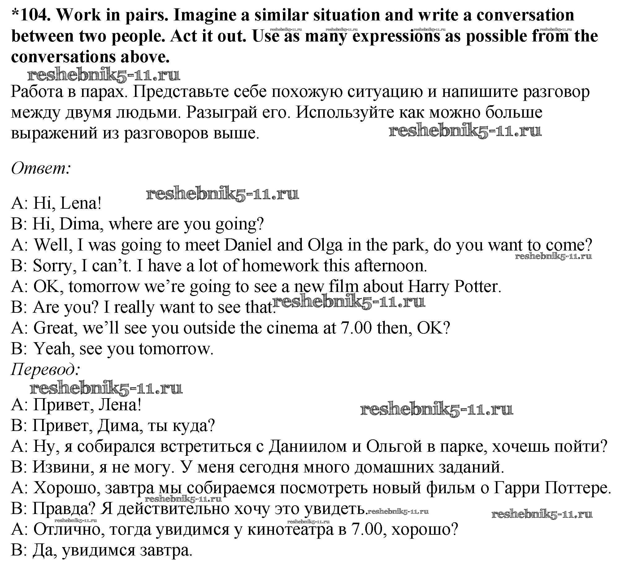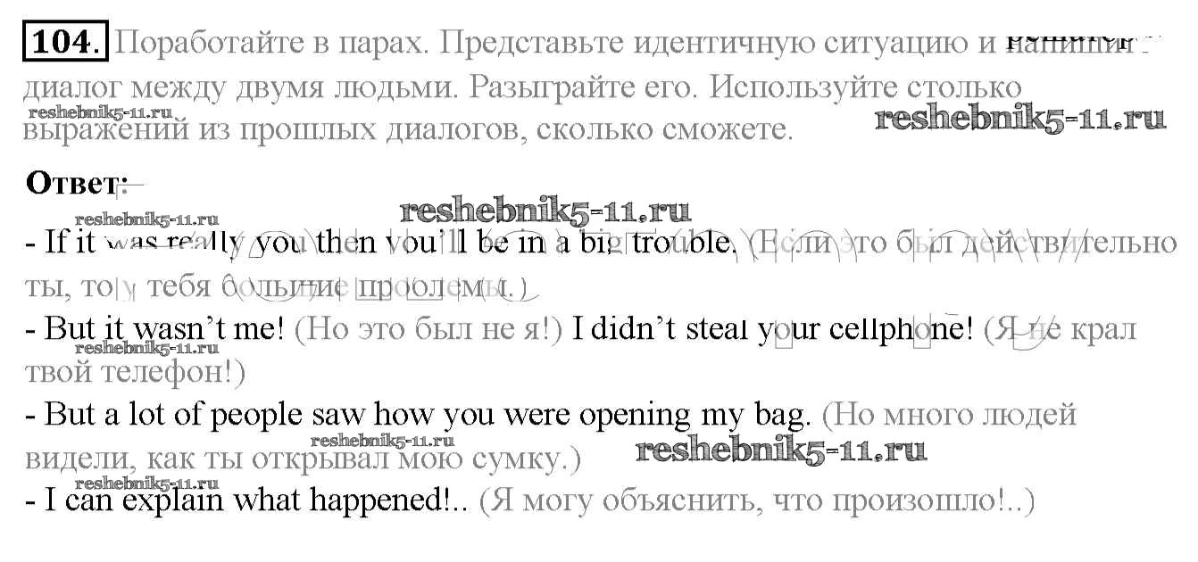 Готовая домашняя работа с ответами по Английскому языку за 7 класс Биболетова, Трубанева Учебник УМК Титул 2015 ФГОС - Exercises 104