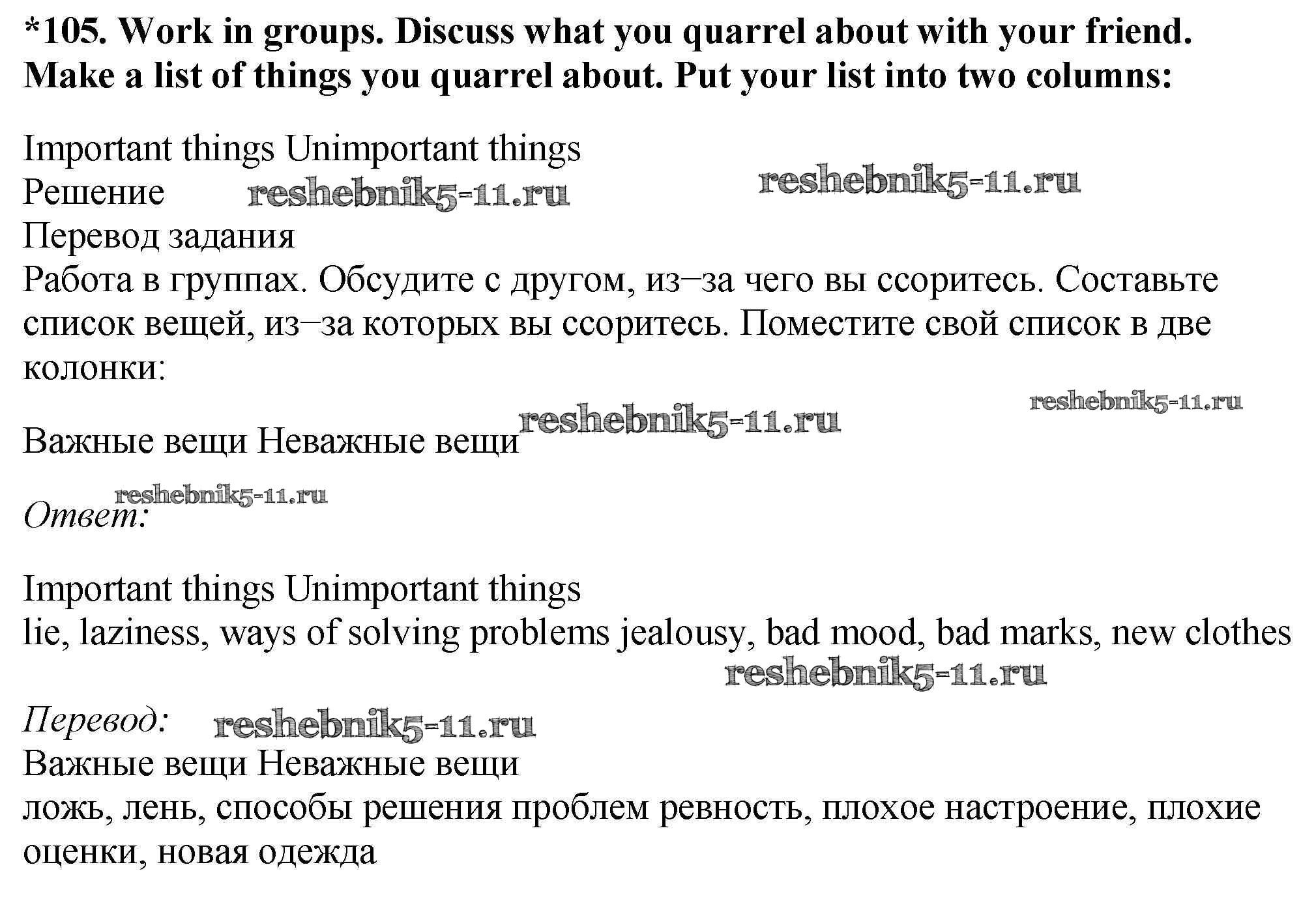 Готовая домашняя работа с ответами по Английскому языку за 7 класс Биболетова, Трубанева Учебник УМК Титул 2015 ФГОС - Exercises 105