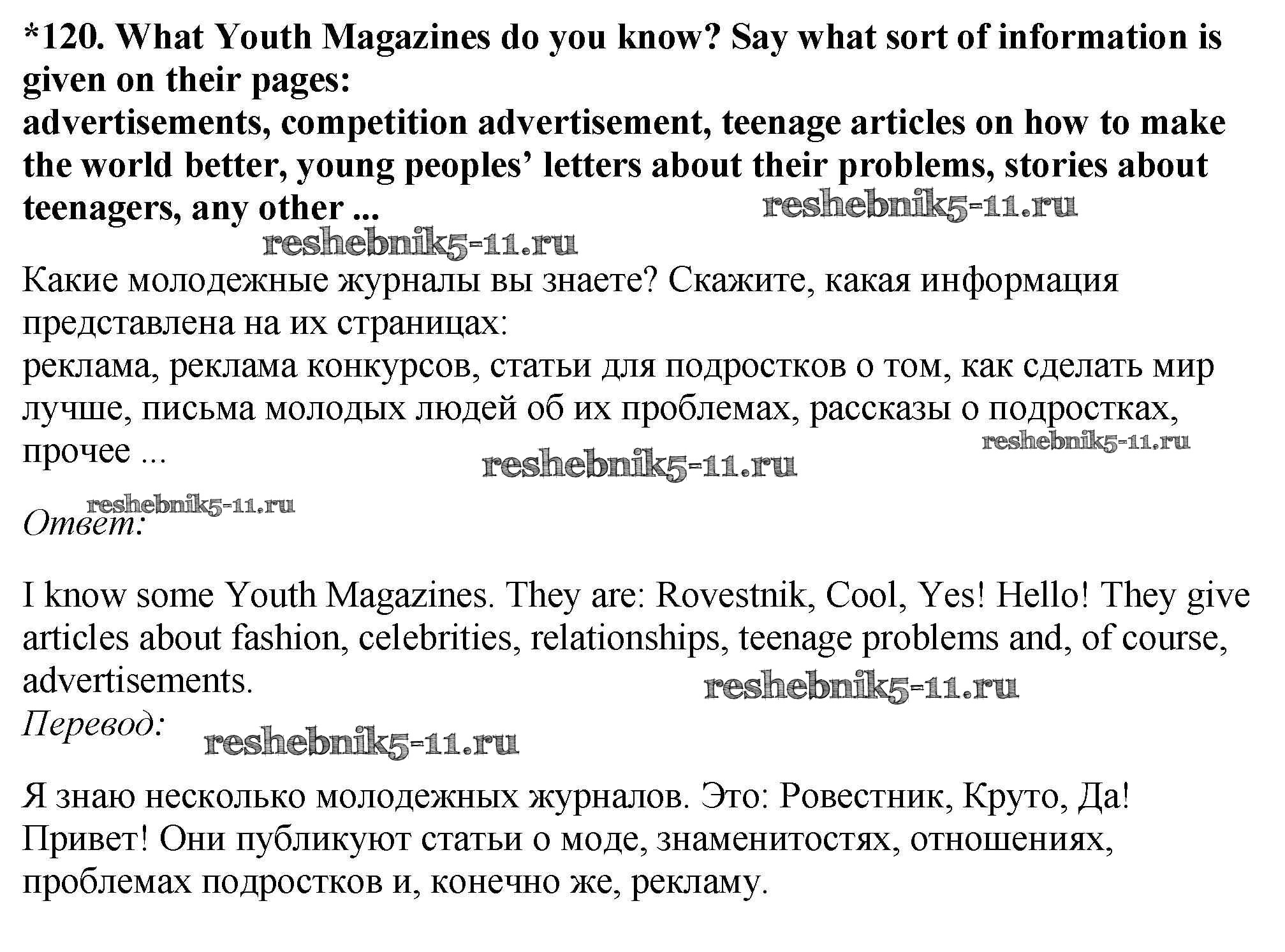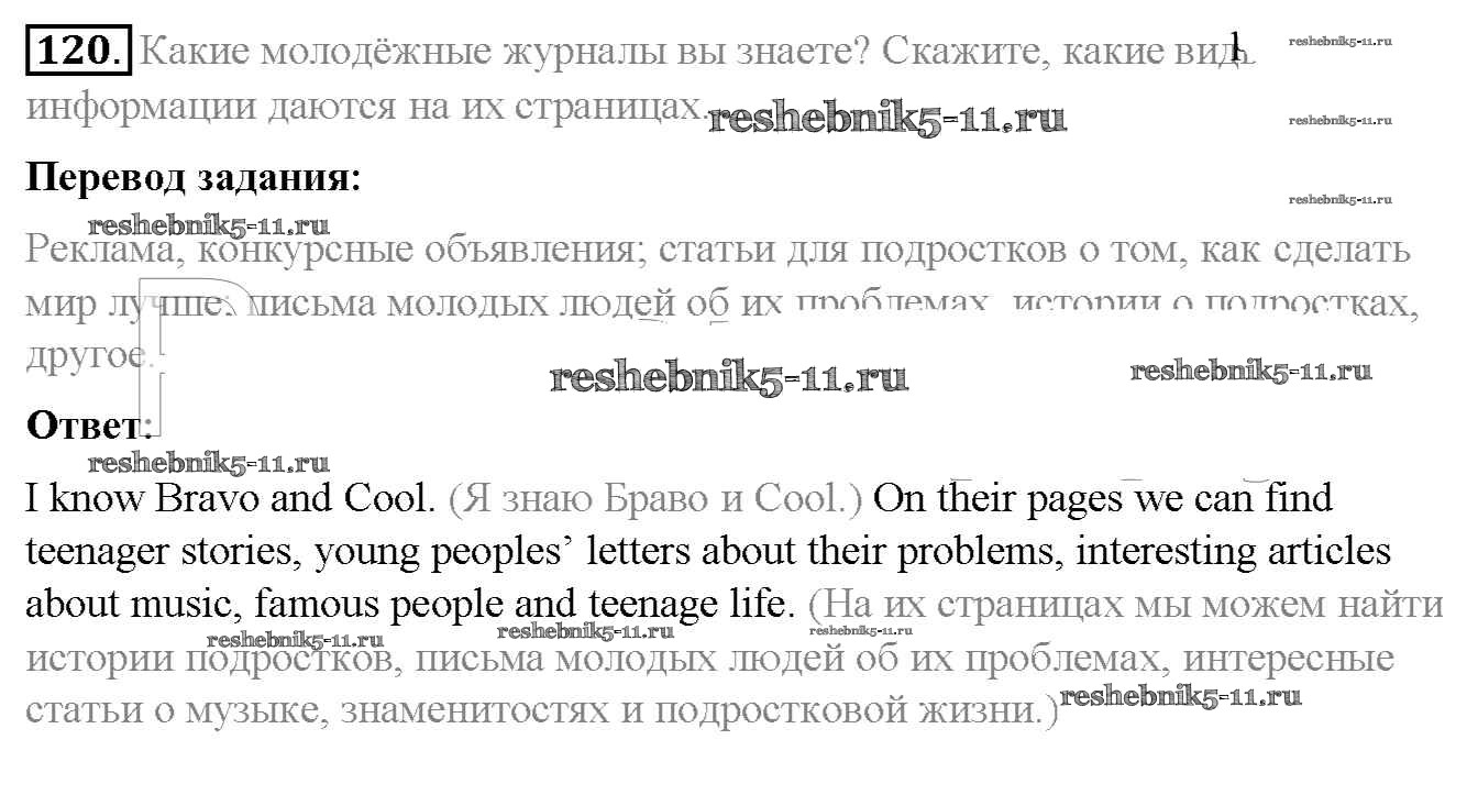 Готовая домашняя работа с ответами по Английскому языку за 7 класс Биболетова, Трубанева Учебник УМК Титул 2015 ФГОС - Exercises 120