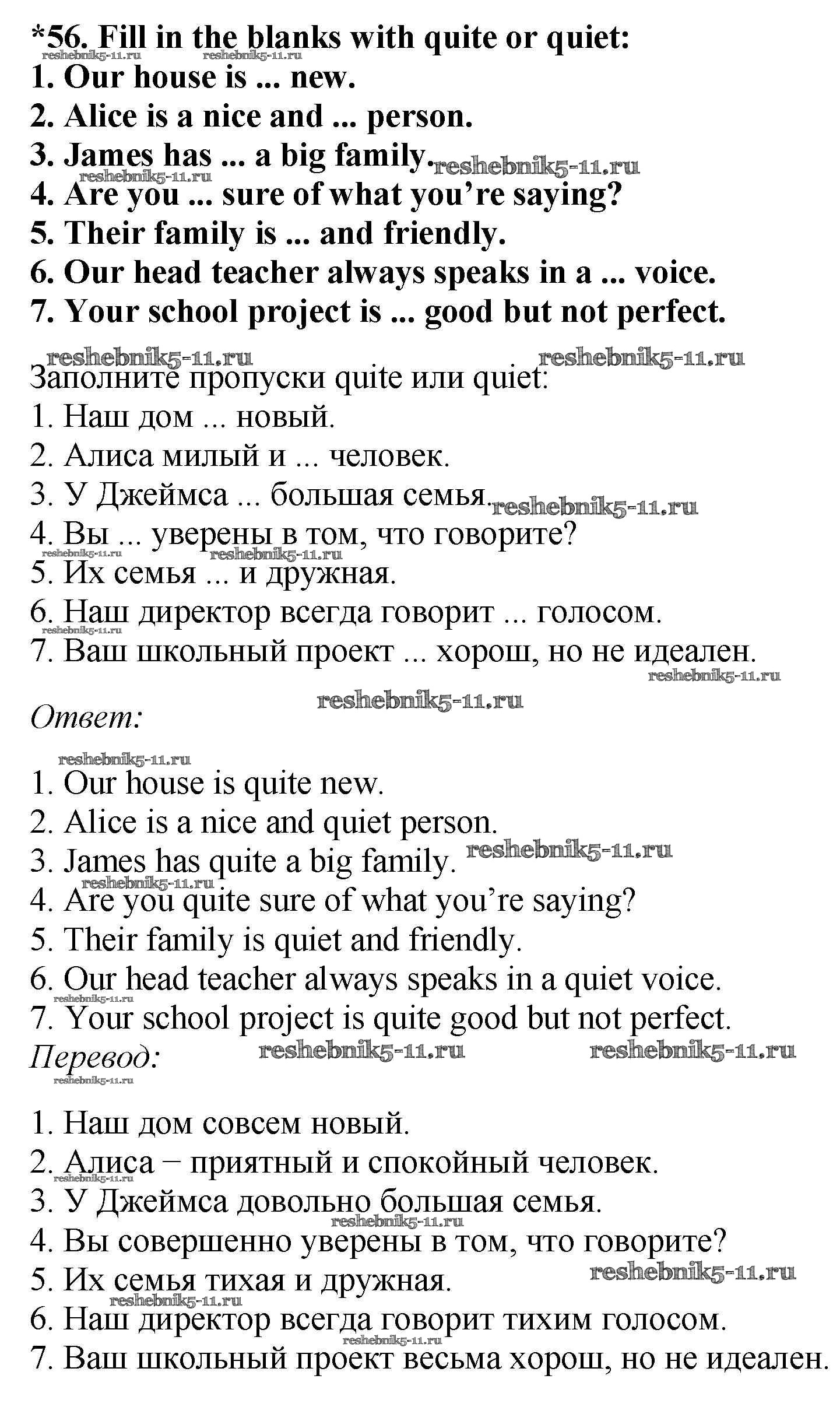 Готовая домашняя работа с ответами по Английскому языку за 7 класс Биболетова, Трубанева Учебник УМК Титул 2015 ФГОС - Exercises 56