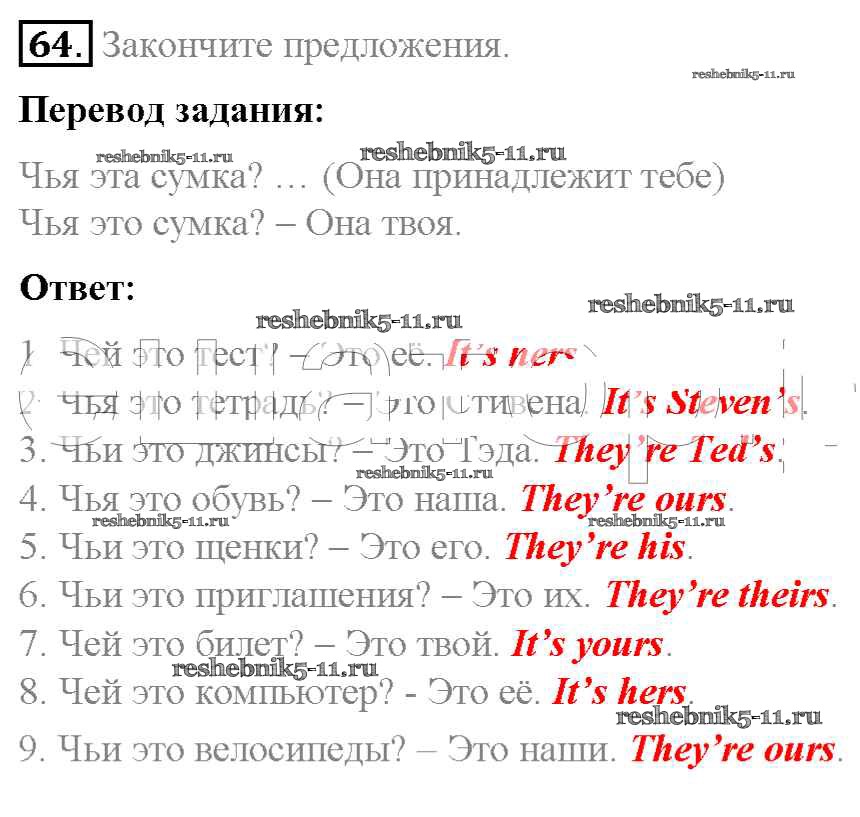 Решебник №1 (2017) / учебник 2017 (Дрофа) / unit 3 / exercise / 64
