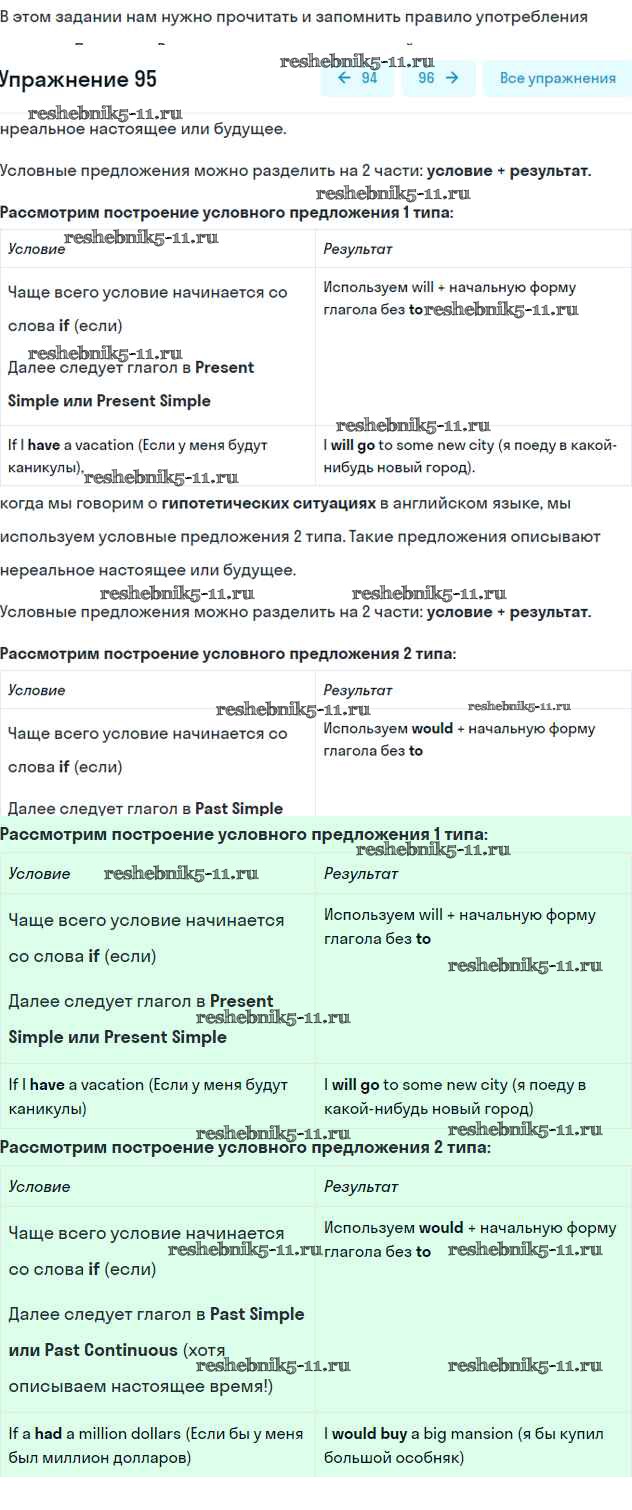 Готовая домашняя работа с ответами по Английскому языку за 7 класс Биболетова, Трубанева Учебник УМК Титул 2015 ФГОС - Exercises 95