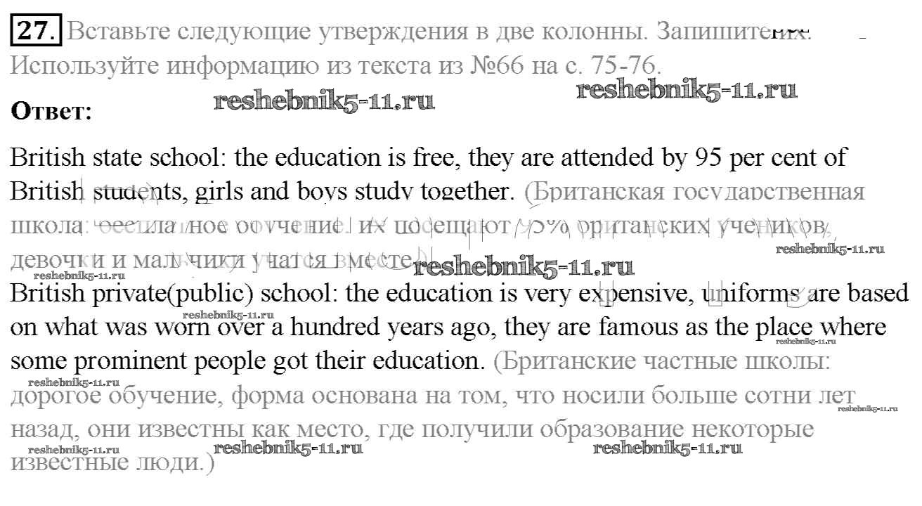 Готовая домашняя работа с ответами по Английскому языку за 7 класс Биболетова, Трубанева Учебник УМК Титул 2015 ФГОС - Homework 27