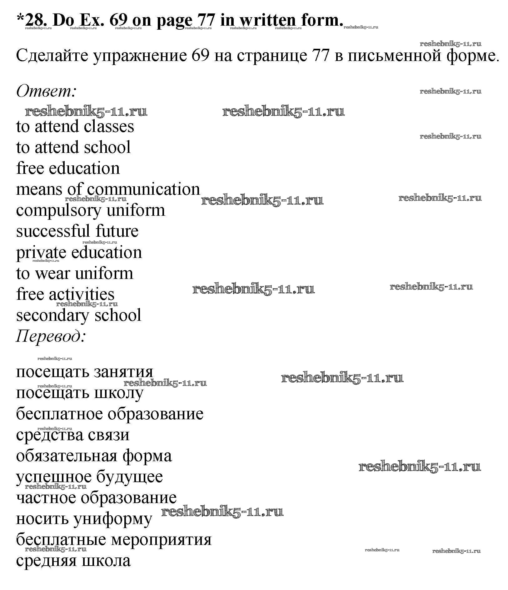 Готовая домашняя работа с ответами по Английскому языку за 7 класс Биболетова, Трубанева Учебник УМК Титул 2015 ФГОС - Homework 28