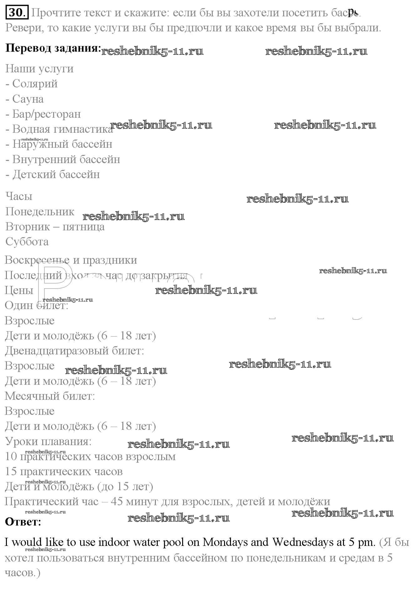 Готовая домашняя работа с ответами по Английскому языку за 7 класс Биболетова, Трубанева Учебник УМК Титул 2015 ФГОС - Exercises 30