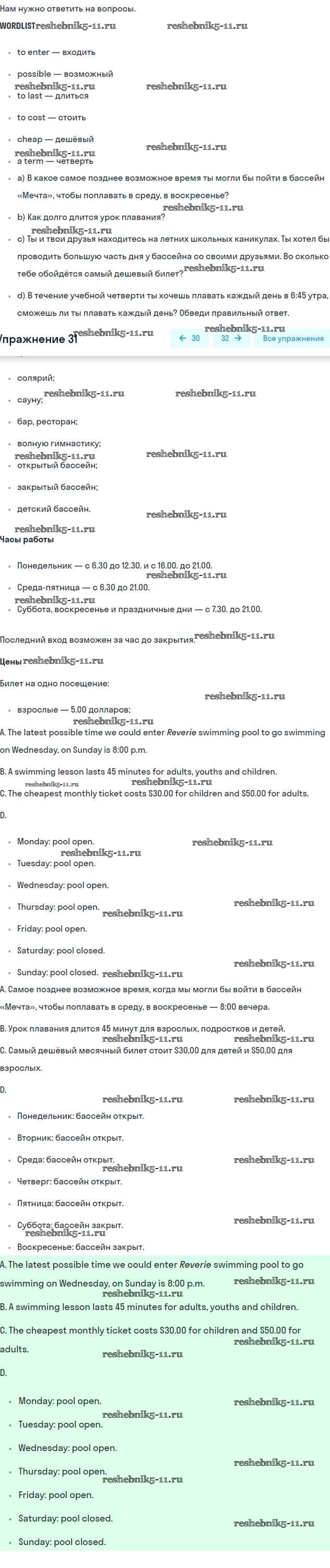 Готовая домашняя работа с ответами по Английскому языку за 7 класс Биболетова, Трубанева Учебник УМК Титул 2015 ФГОС - Exercises 31