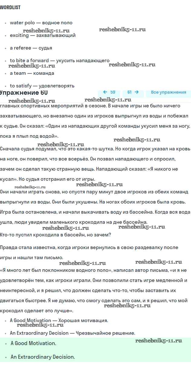 Готовая домашняя работа с ответами по Английскому языку за 7 класс Биболетова, Трубанева Учебник УМК Титул 2015 ФГОС - Exercises 60