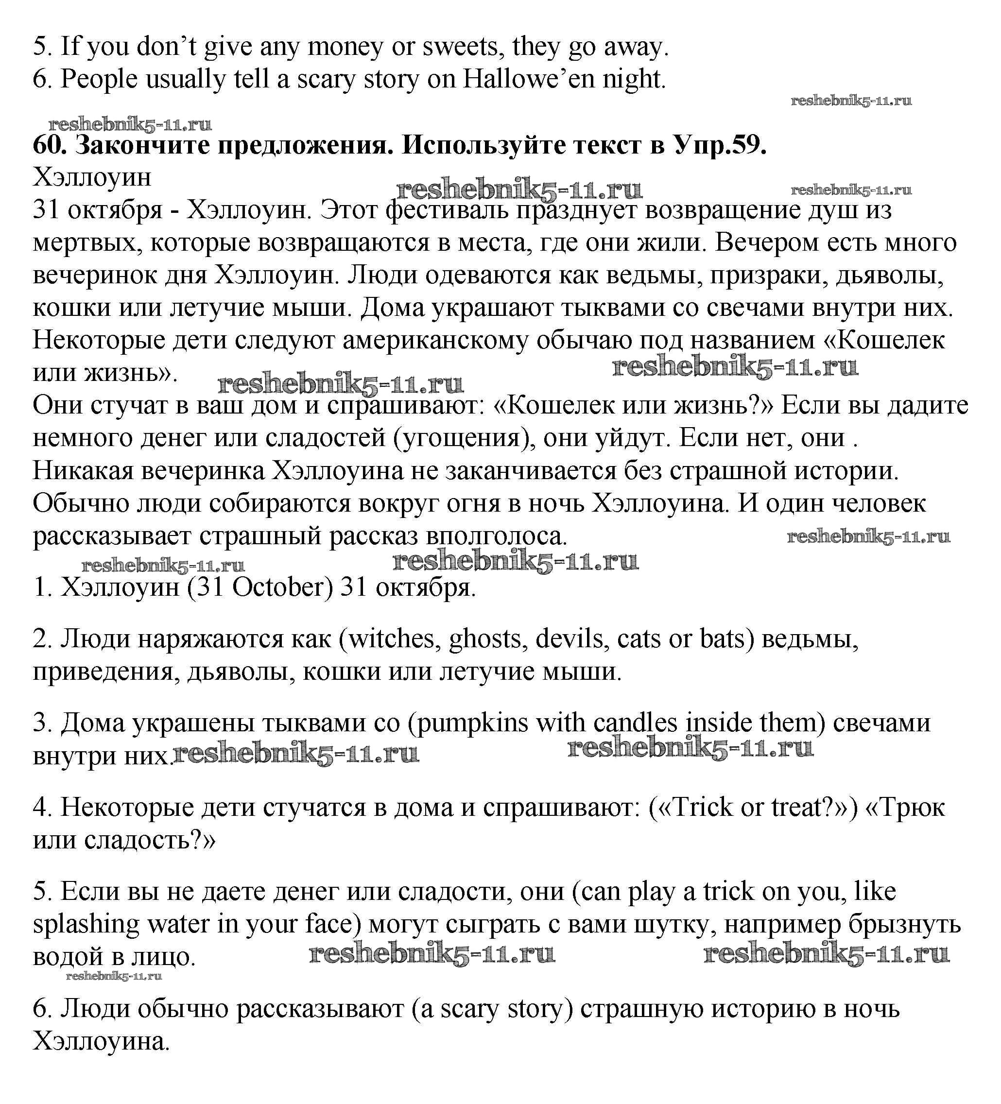 Готовая домашняя работа с ответами по Английскому языку за 7 класс Биболетова, Трубанева Учебник УМК Титул 2015 ФГОС - Exercises 60