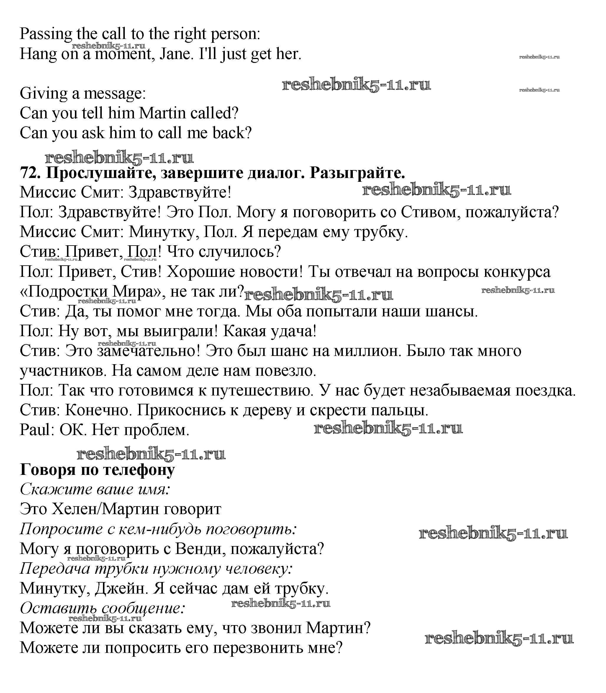 Решебник №2 (2015) / учебник 2015 (Титул) / unit 1 / exercise / 72