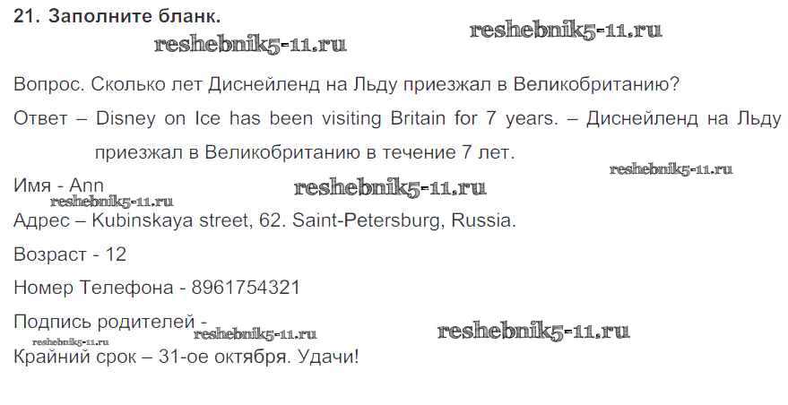 Готовая домашняя работа с ответами по Английскому языку за 7 класс Биболетова, Трубанева Учебник УМК Титул 2015 ФГОС - Homework 21