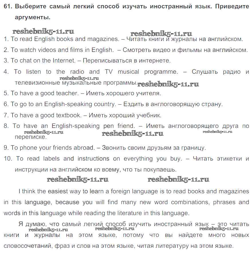 Готовая домашняя работа с ответами по Английскому языку за 7 класс Биболетова, Трубанева Учебник УМК Титул 2015 ФГОС - Exercises 61