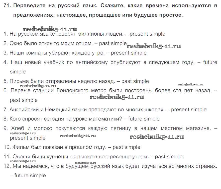Готовая домашняя работа с ответами по Английскому языку за 7 класс Биболетова, Трубанева Учебник УМК Титул 2015 ФГОС - Exercises 71