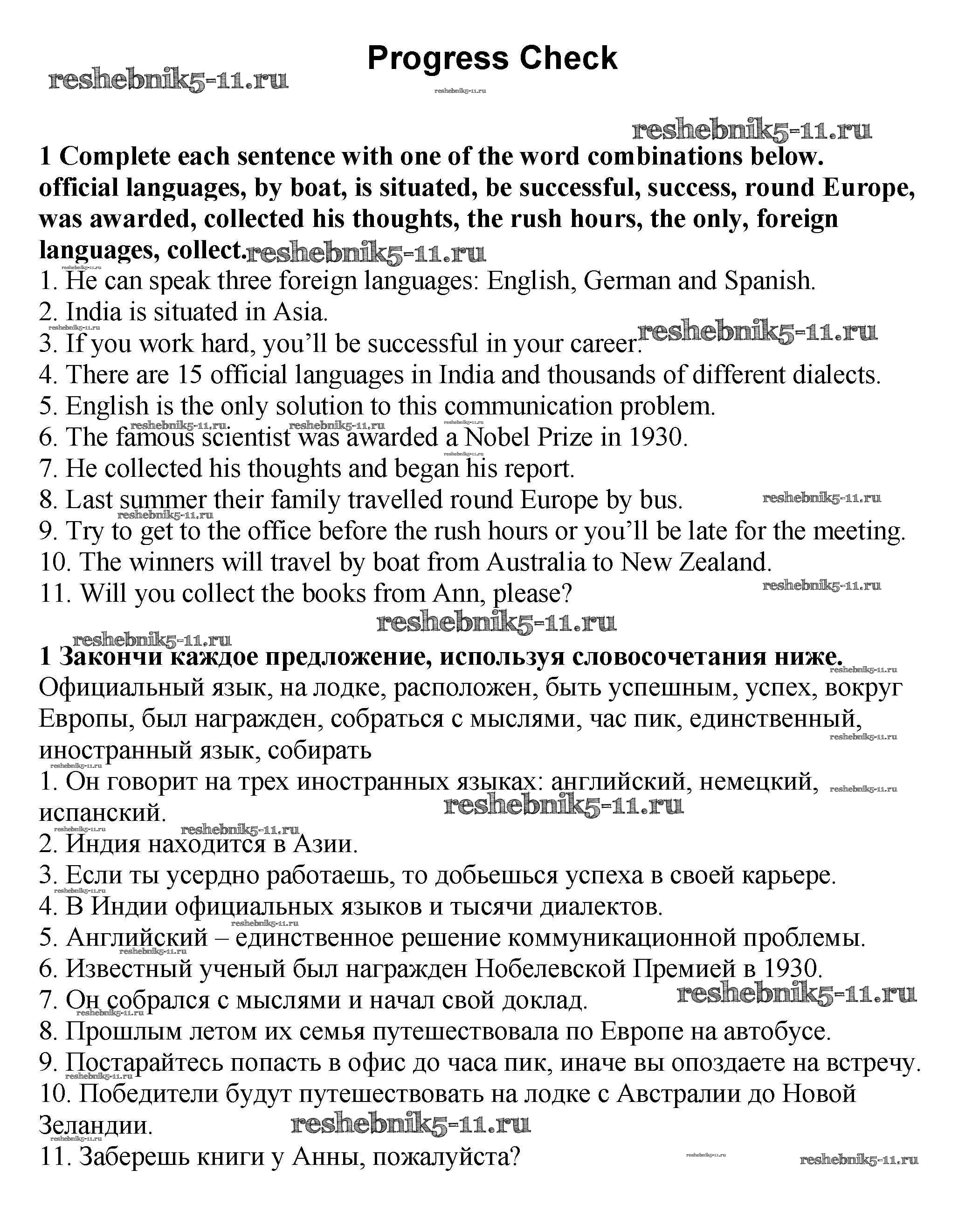 Готовая домашняя работа с ответами по Английскому языку за 7 класс Биболетова, Трубанева Учебник УМК Титул 2015 ФГОС - Progress check 1