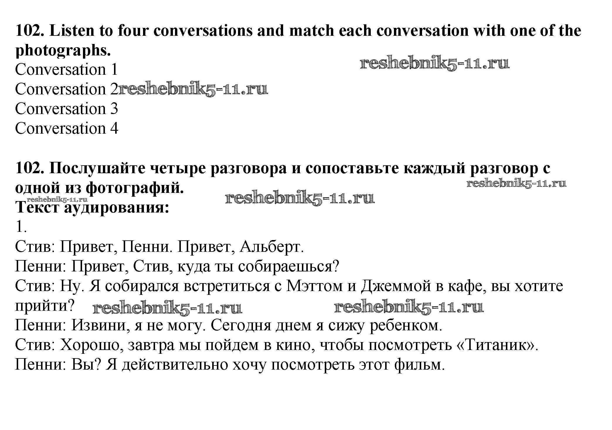 Готовая домашняя работа с ответами по Английскому языку за 7 класс Биболетова, Трубанева Учебник УМК Титул 2015 ФГОС - Exercises 102