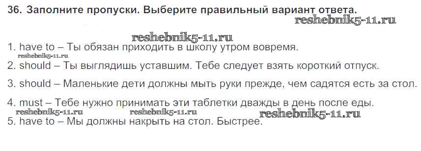 Решебник №2 (2015) / учебник 2015 (Титул) / unit 3 / exercise / 36