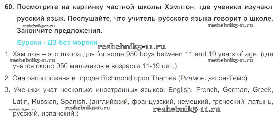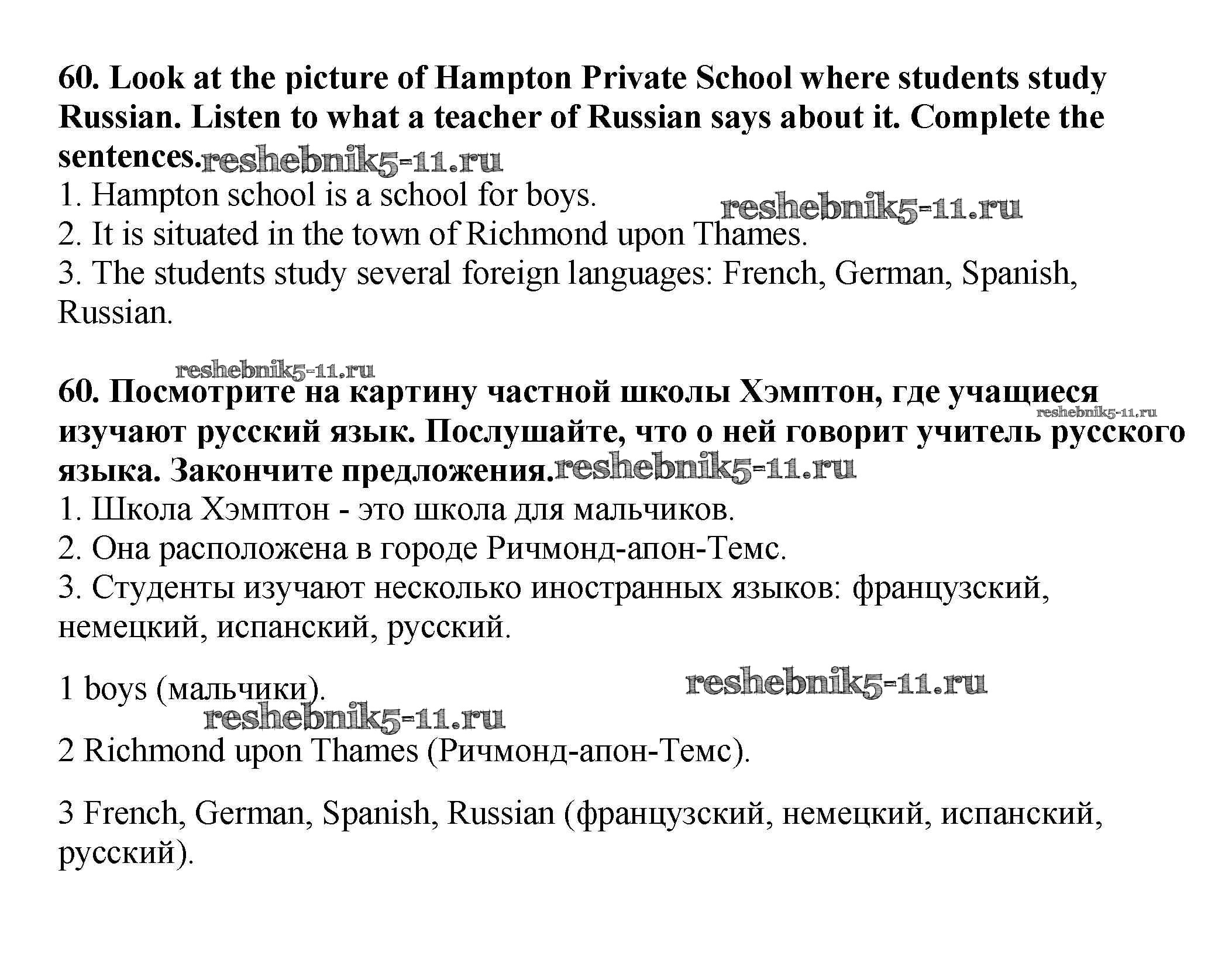 Готовая домашняя работа с ответами по Английскому языку за 7 класс Биболетова, Трубанева Учебник УМК Титул 2015 ФГОС - Exercises 60