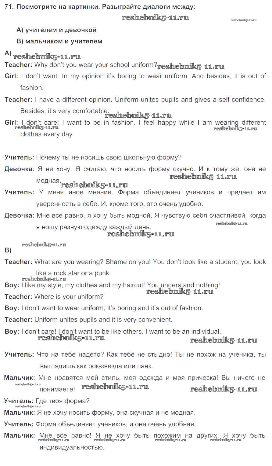 Решебник №1 (2015) / учебник 2015 (Титул) / unit 3 / exercise / 71