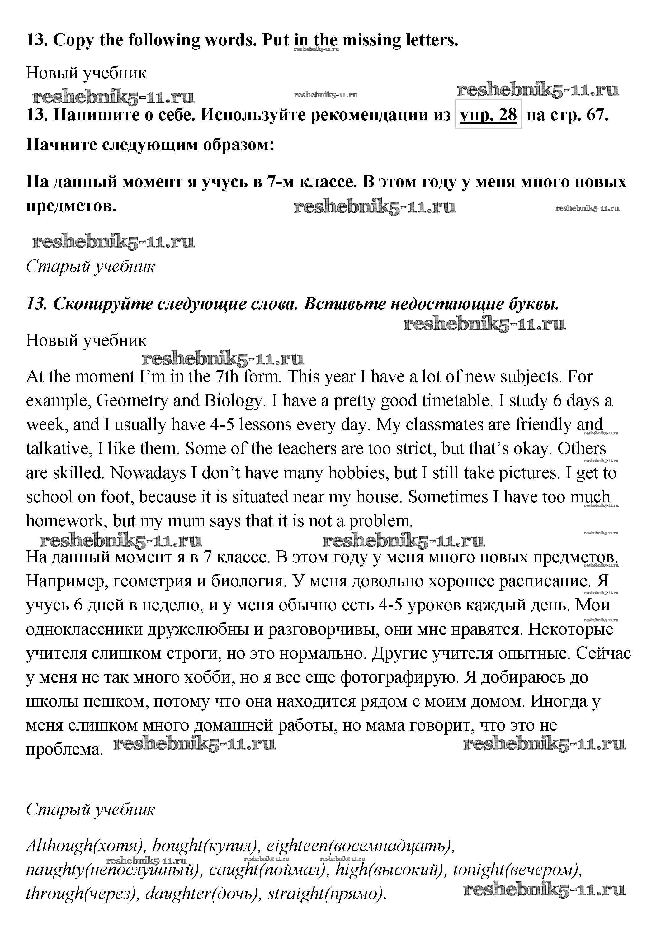Готовая домашняя работа с ответами по Английскому языку за 7 класс Биболетова, Трубанева Учебник УМК Титул 2015 ФГОС - Homework 13