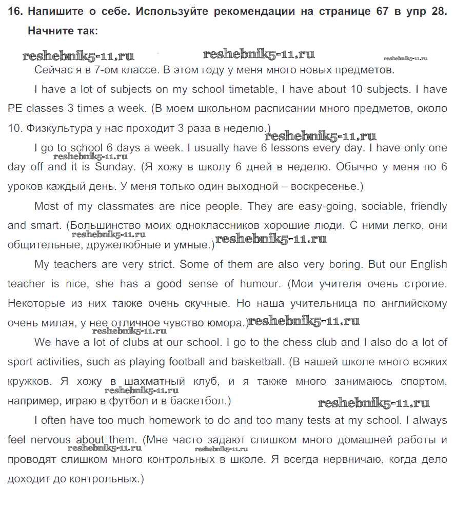 Готовая домашняя работа с ответами по Английскому языку за 7 класс Биболетова, Трубанева Учебник УМК Титул 2015 ФГОС - Homework 16
