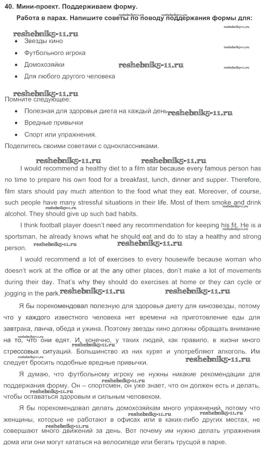 Готовая домашняя работа с ответами по Английскому языку за 7 класс Биболетова, Трубанева Учебник УМК Титул 2015 ФГОС - Exercises 40