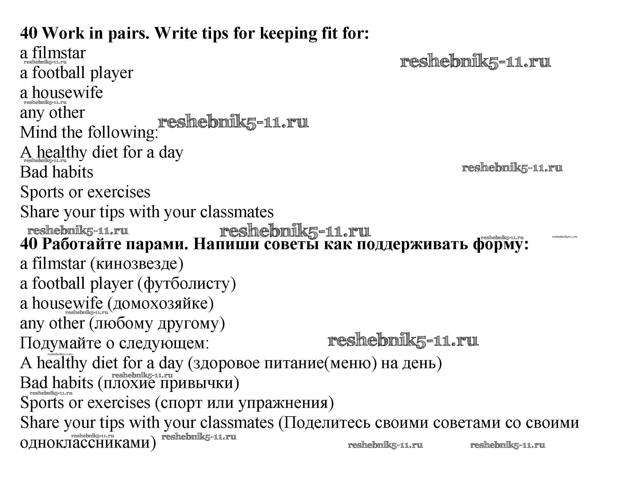 Решебник №2 (2015) / учебник 2015 (Титул) / unit 4 / exercise / 40