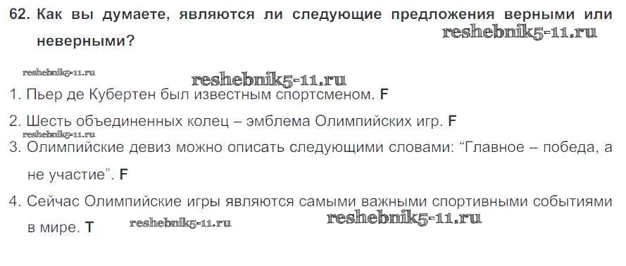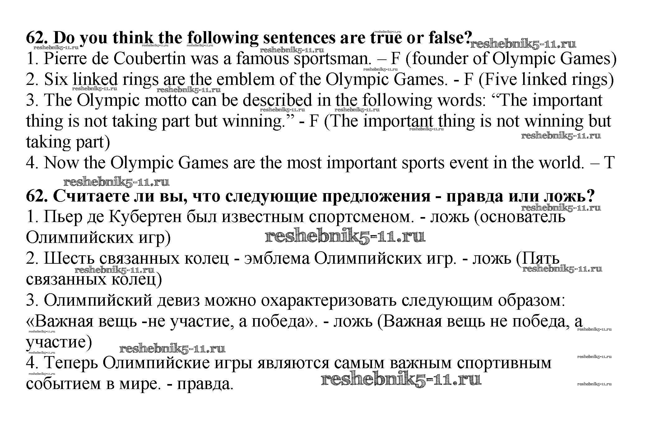 Решебник №2 (2015) / учебник 2015 (Титул) / unit 4 / exercise / 62