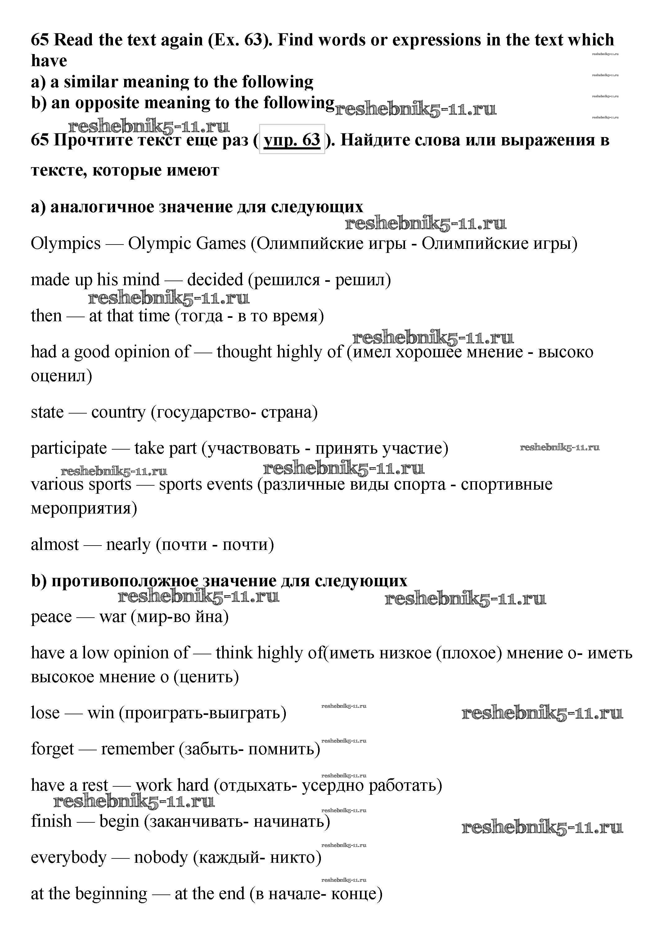 Решебник №2 (2015) / учебник 2015 (Титул) / unit 4 / exercise / 65