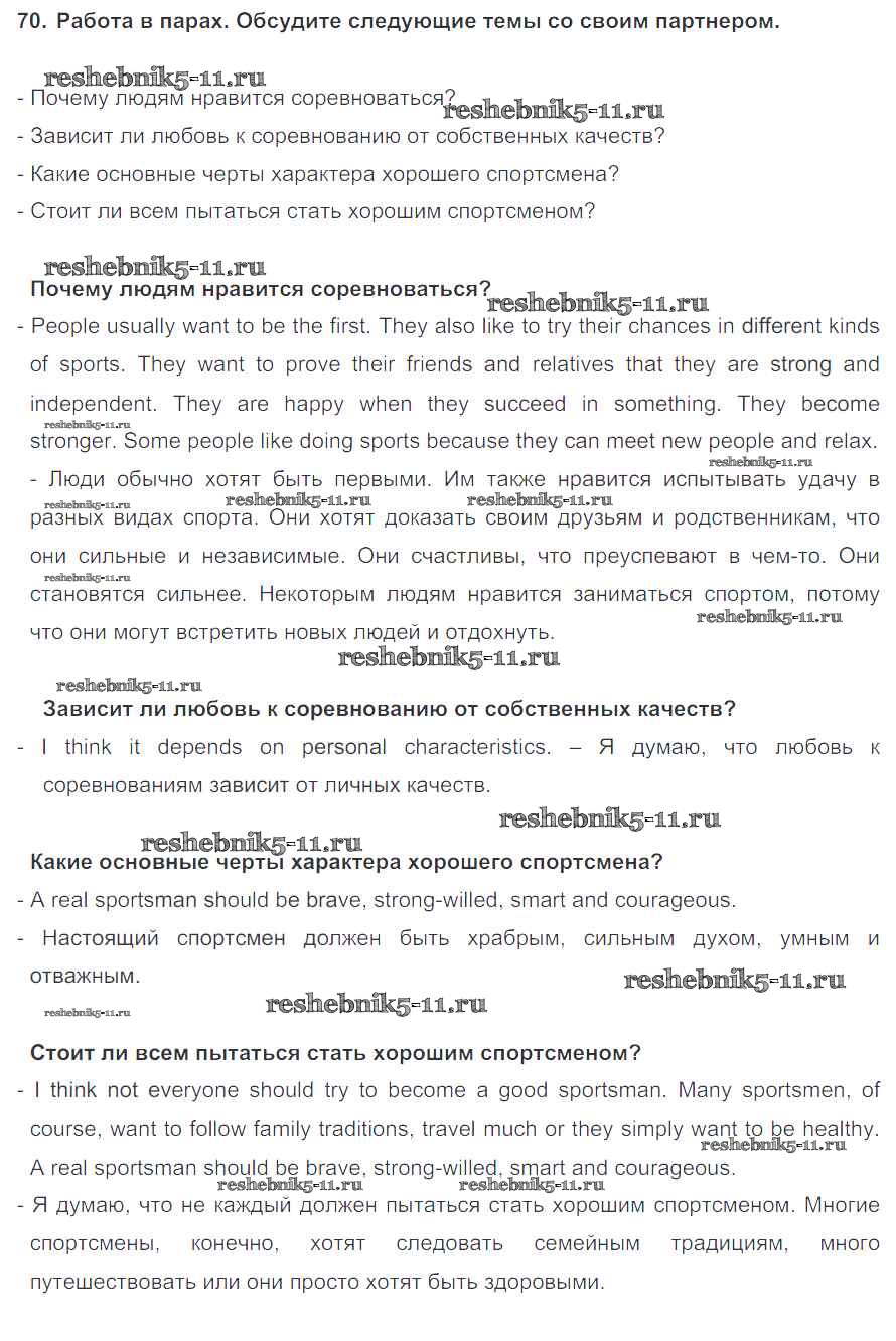 Готовая домашняя работа с ответами по Английскому языку за 7 класс Биболетова, Трубанева Учебник УМК Титул 2015 ФГОС - Exercises 70