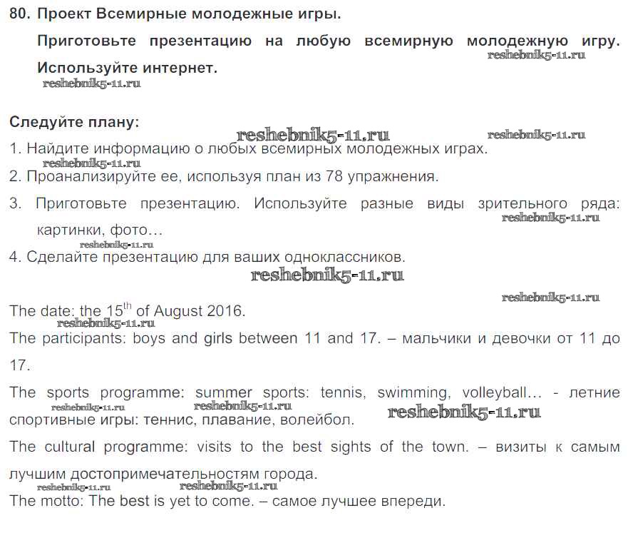 Готовая домашняя работа с ответами по Английскому языку за 7 класс Биболетова, Трубанева Учебник УМК Титул 2015 ФГОС - Exercises 80