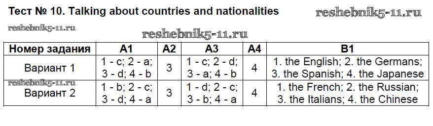 Готовая домашняя работа с ответами по Английскому языку за 7 класс Артюхова Контрольно-измерительные материалы (КИМ) ВАКО 2017 ФГОС - Тесты 10