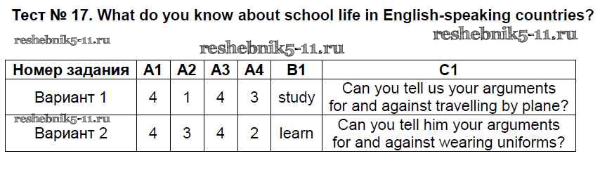 Готовая домашняя работа с ответами по Английскому языку за 7 класс Артюхова Контрольно-измерительные материалы (КИМ) ВАКО 2017 ФГОС - Тесты 17