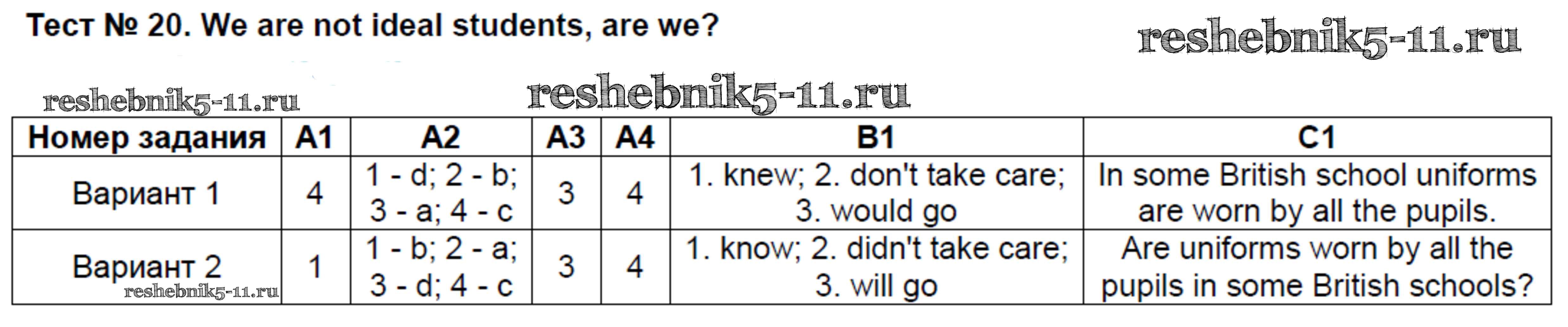 Готовая домашняя работа с ответами по Английскому языку за 7 класс Артюхова Контрольно-измерительные материалы (КИМ) ВАКО 2017 ФГОС - Тесты 20