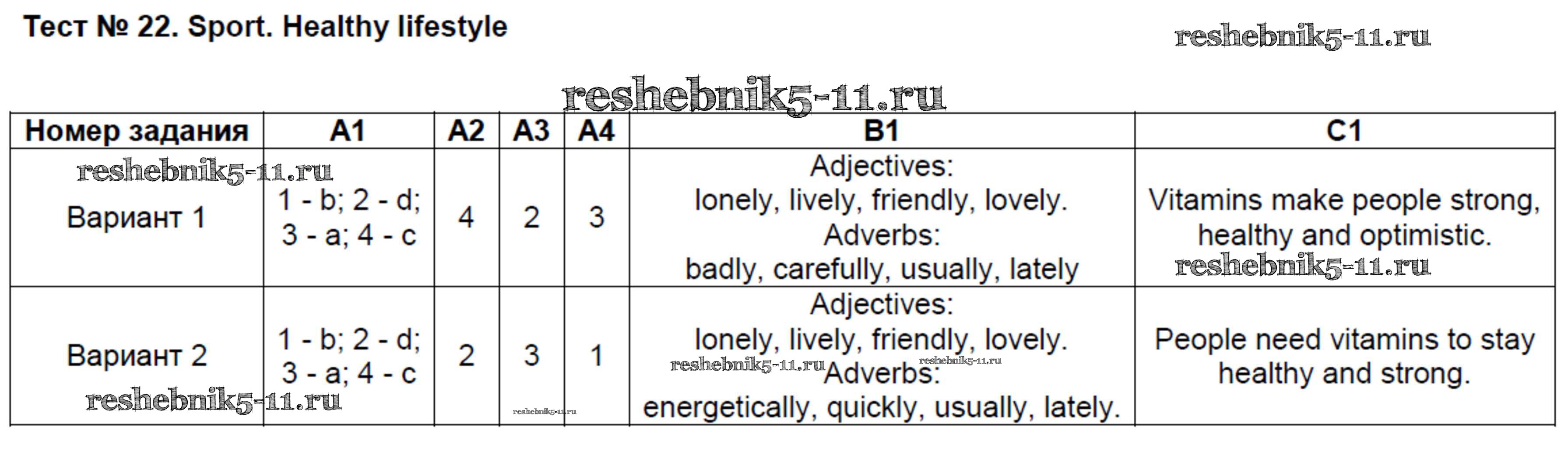 Готовая домашняя работа с ответами по Английскому языку за 7 класс Артюхова Контрольно-измерительные материалы (КИМ) ВАКО 2017 ФГОС - Тесты 22