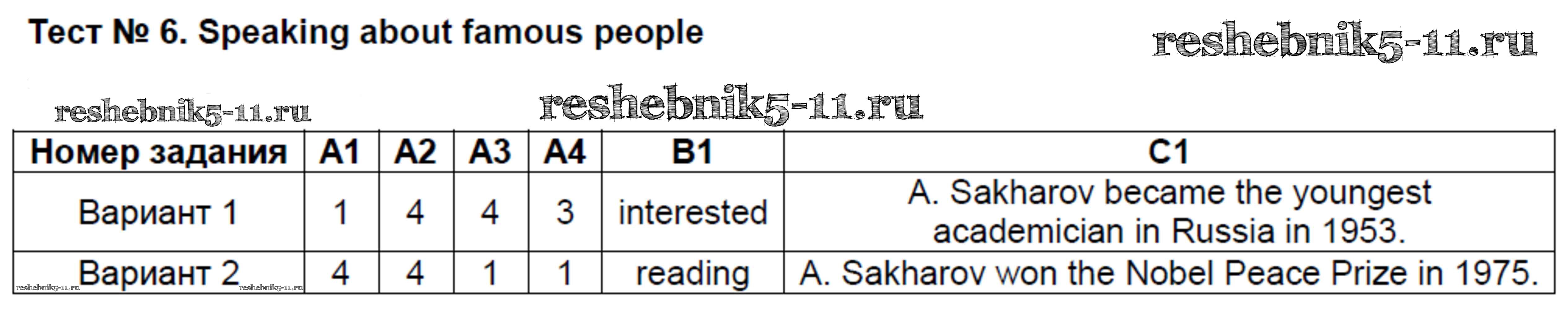 Готовая домашняя работа с ответами по Английскому языку за 7 класс Артюхова Контрольно-измерительные материалы (КИМ) ВАКО 2017 ФГОС - Тесты 6