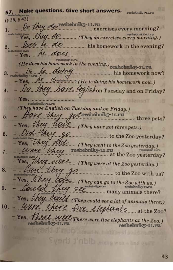 Готовая домашняя работа с ответами по Английскому языку за 7 класс Барашкова Сборник упражнений УМК Часть 1, 2 Экзамен 2017 ФГОС - Unit 1 стр.43