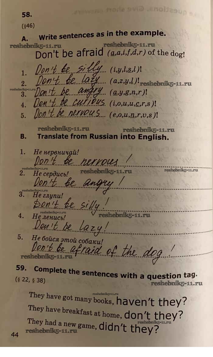 Готовая домашняя работа с ответами по Английскому языку за 7 класс Барашкова Сборник упражнений УМК Часть 1, 2 Экзамен 2017 ФГОС - Unit 1 стр.44