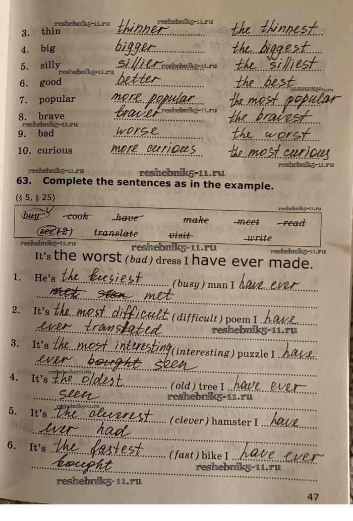 Готовая домашняя работа с ответами по Английскому языку за 7 класс Барашкова Сборник упражнений УМК Часть 1, 2 Экзамен 2017 ФГОС - Unit 1 стр.47