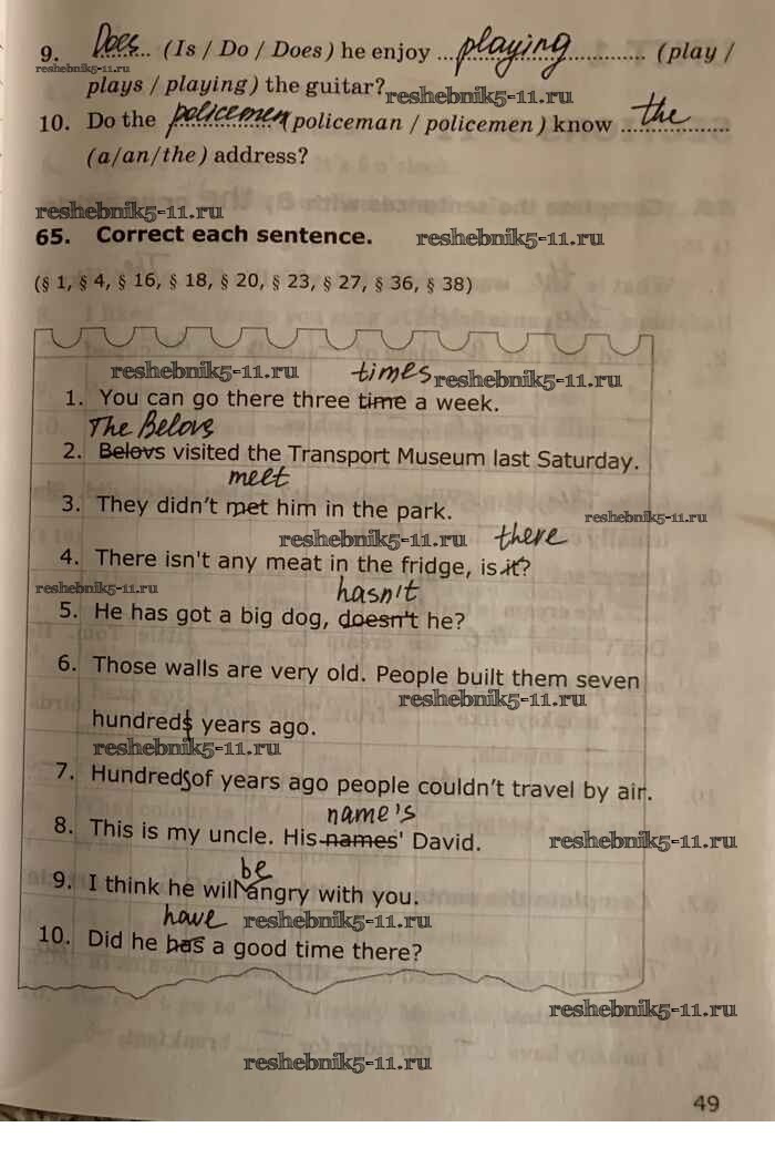 Готовая домашняя работа с ответами по Английскому языку за 7 класс Барашкова Сборник упражнений УМК Часть 1, 2 Экзамен 2017 ФГОС - Unit 1 стр.49