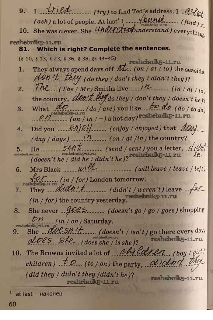 Готовая домашняя работа с ответами по Английскому языку за 7 класс Барашкова Сборник упражнений УМК Часть 1, 2 Экзамен 2017 ФГОС - Unit 1 стр.60