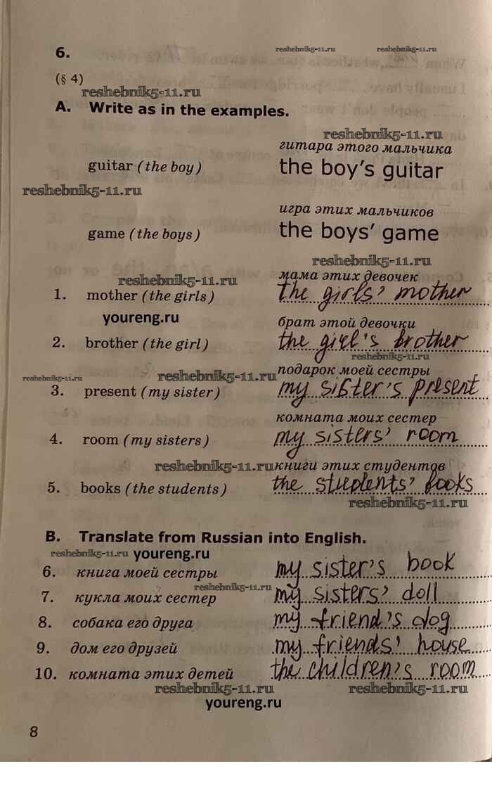 Готовая домашняя работа с ответами по Английскому языку за 7 класс Барашкова Сборник упражнений УМК Часть 1, 2 Экзамен 2017 ФГОС - Unit 1 стр.8